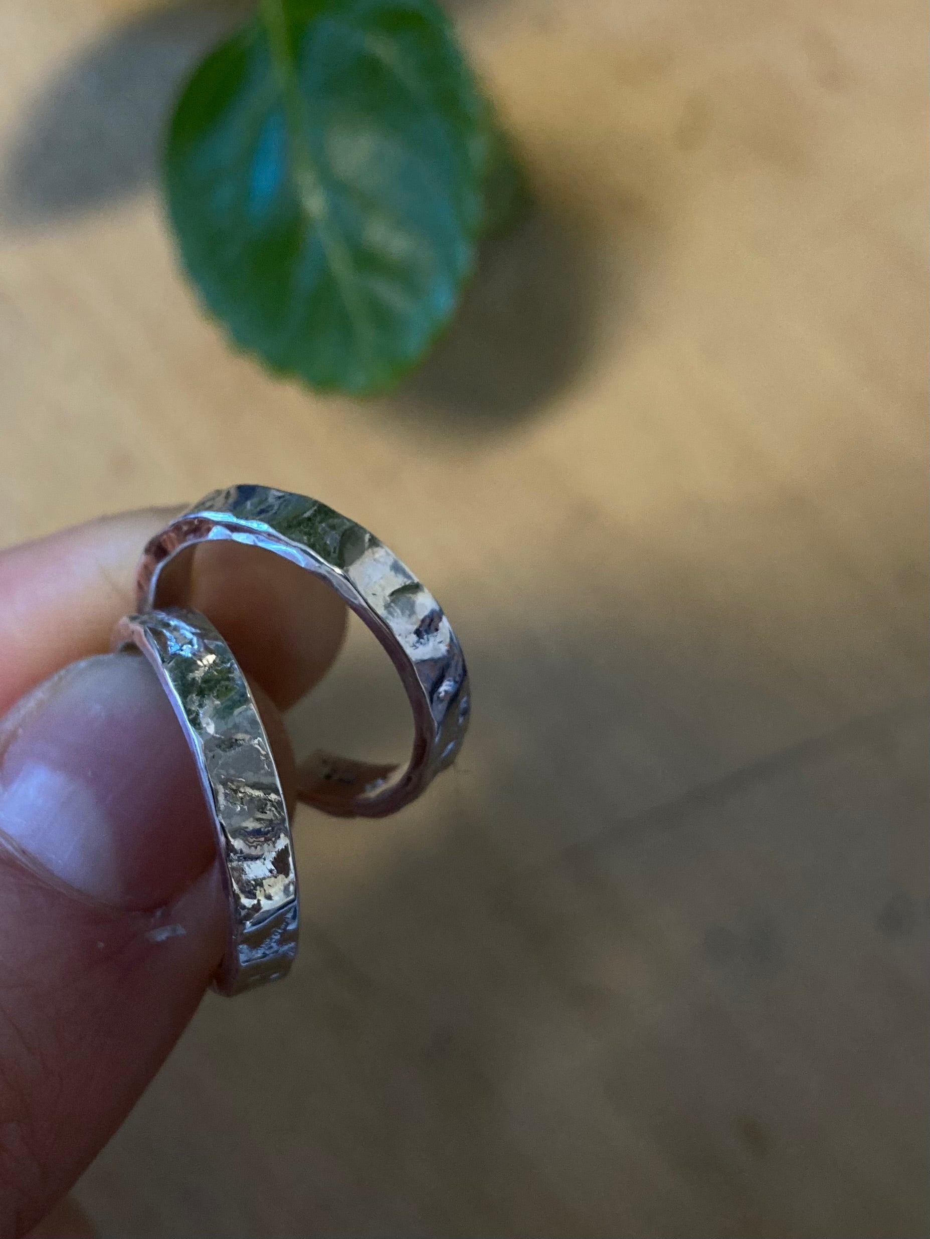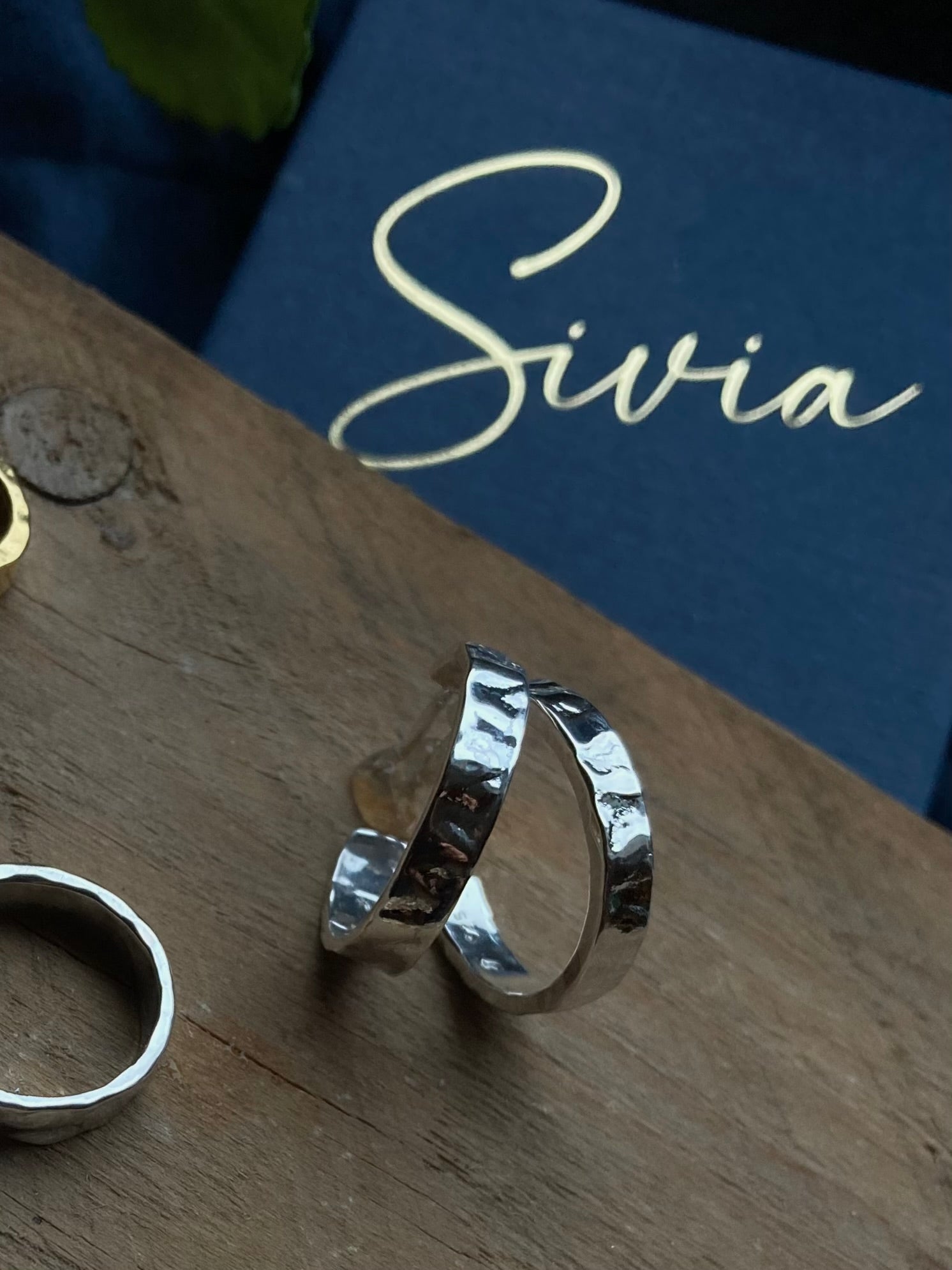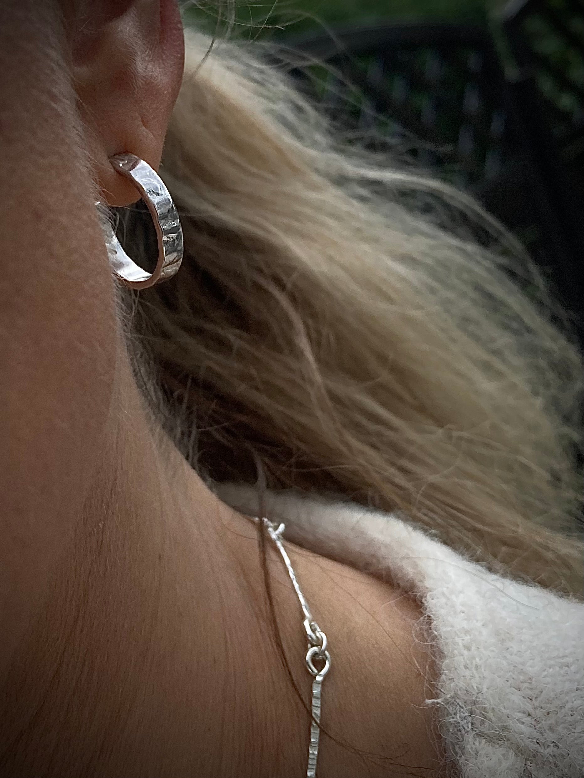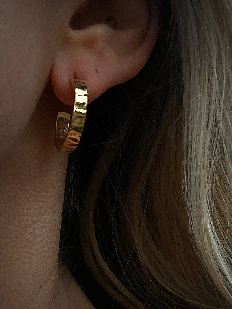 Håndlagde øreringer i 925 sølv med en røff og levende overflate. De forgylte smykkene er belagt med 23k gull.